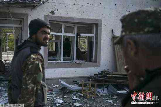 資料圖:當(dāng)?shù)貢r(shí)間10月15日,亞美尼亞和阿塞拜疆的沖突在納卡地區(qū)持續(xù)進(jìn)行,Martakert地區(qū)一家醫(yī)院在戰(zhàn)火中被摧毀。圖為亞美尼亞士兵站在被部分摧毀的軍事醫(yī)院建筑前。