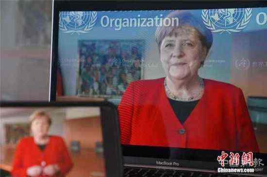 資料圖:2020年5月18日,第七十三屆世界衛(wèi)生大會(huì)以視頻會(huì)議形式舉行開(kāi)幕式。圖為在德國(guó)柏林拍攝的德國(guó)總理默克爾遠(yuǎn)程致辭畫(huà)面。 中新社記者 彭大偉 攝