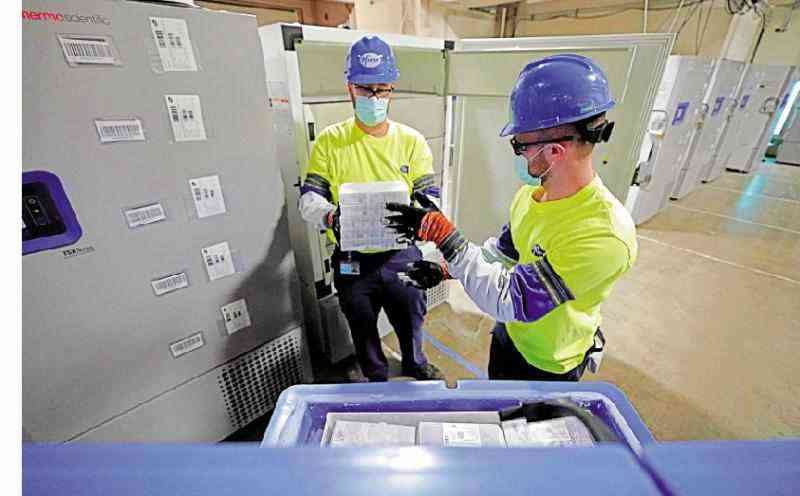 圖:密歇根州工作人員13日從冷藏裝置中取出新冠疫苗/美聯(lián)社