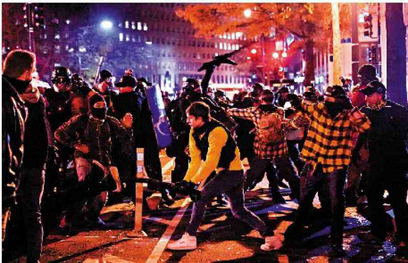 圖:“驕傲男孩”12日晚在華府與反示威者爆發(fā)暴力沖突\路透社