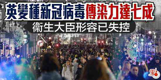 英國近期出現(xiàn)一種新的變種新冠病毒,傳染力高達70%,導致當?shù)匾咔榧眲夯Sl(wèi)生大臣夏國賢20日接受天空新聞臺(Sky News)訪問時表示,形容發(fā)現(xiàn)的新毒株是致命病毒,已經(jīng)失去控制。他呼吁住在第4級防疫措施地區(qū)的所有民眾,都要以經(jīng)已染疫的態(tài)度,加強防控。