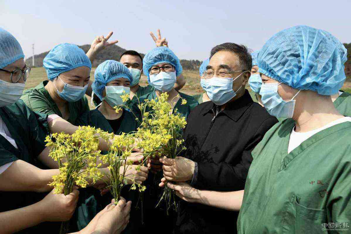 3月10日,中央指導(dǎo)組專家組成員、中國(guó)工程院院士、天津中醫(yī)藥大學(xué)校長(zhǎng)張伯禮在武漢江夏方艙醫(yī)院看望慰問(wèn)一線醫(yī)務(wù)人員。(中國(guó)日?qǐng)?bào)記者 朱興鑫 攝)