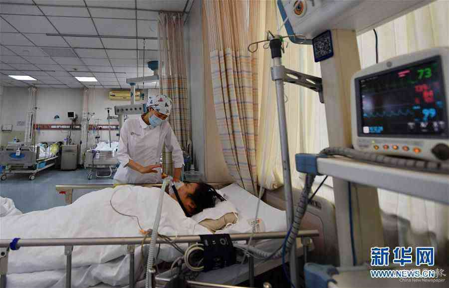 沈悅好在病房?jī)?nèi)看護(hù)病人(5月4日攝)。新華社記者 李然 攝