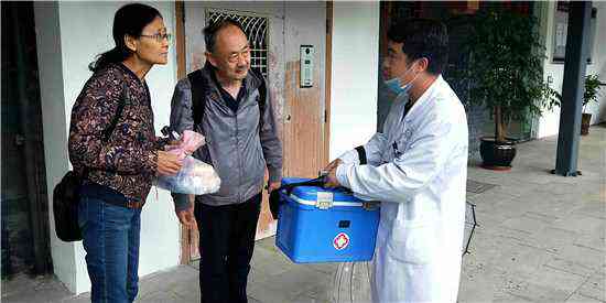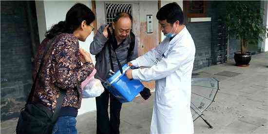 5分鐘后,楊女士夫婦從護(hù)士長(zhǎng)賴朝鳳手里接過包藥輔助材料后,便急匆匆地來到一樓藥房冷藏室。此時(shí),只見金佛山中醫(yī)院業(yè)務(wù)副院長(zhǎng)敖定偉提著一個(gè)大號(hào)的綠色紅十字塑料箱走出藥房冷藏室,一邊叮囑兩位老人,一邊打開箱子說:“這是冷藏的七天用藥,這是冰塊,路途是千萬不要打開箱子,以防冰塊加速融化后藥物失效。”隨后,敖定偉又從箱子里取出一個(gè)小塑料瓶說,這是藥丸,記得記患者按時(shí)服用,以輔助增加療效。
