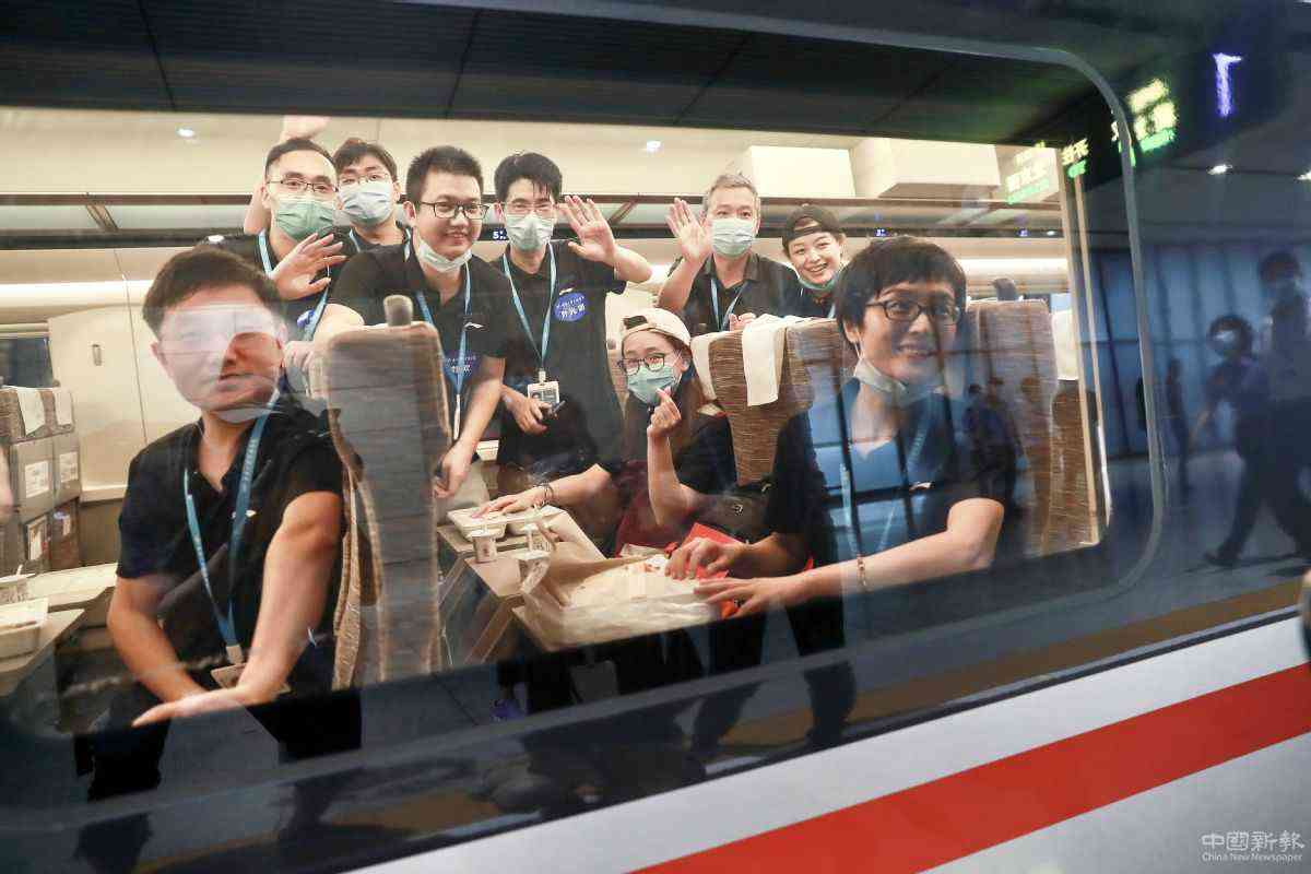 6月20日,在武漢火車站,武漢大學(xué)中南醫(yī)院援京醫(yī)療隊(duì)揮手告別。 趙軍 攝