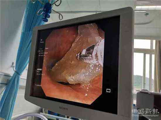 由于家屬自行喂食時(shí)不慎誤吸,病人立即出現(xiàn)呼吸困難,血氧飽和度下降至85%左右,心率升至120次/分左右,呼吸頻率28次/分,神經(jīng)外科立即請(qǐng)呼吸內(nèi)科、重癥醫(yī)學(xué)科專家會(huì)診,經(jīng)聯(lián)合會(huì)診后評(píng)估該患者可能為誤吸導(dǎo)致氣道梗阻可能,有支氣管鏡檢查手術(shù)指針,但該病人合并有擴(kuò)心病、房顫、重癥肺炎等基礎(chǔ)疾病,手術(shù)風(fēng)險(xiǎn)較大,經(jīng)過專家組聯(lián)合討論后,為積極搶救患者生命及保障患者生命安全,決定立即行支氣管鏡檢查術(shù),與患者家屬進(jìn)行充分溝通,告知可能出現(xiàn)的風(fēng)險(xiǎn)、手術(shù)利弊及替代方案,患者家屬積極配合,同意行該項(xiàng)檢查手術(shù),一切預(yù)案準(zhǔn)備就緒后,考慮患者基礎(chǔ)疾病多、病情危重,不宜搬動(dòng),呼吸內(nèi)科將支氣管鏡推至病房床旁,立即行支氣管鏡下異物取出術(shù)。