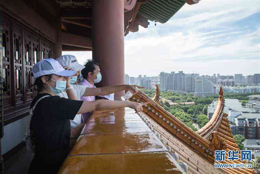8月7日,受邀來湖北旅游的援鄂醫(yī)療隊(duì)員在黃鶴樓遠(yuǎn)眺。新華社記者 肖藝九 攝
