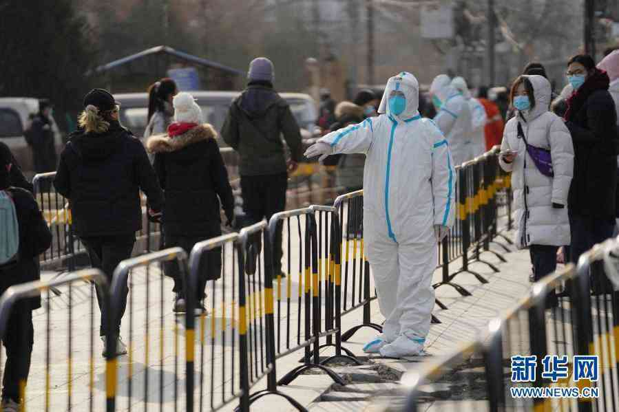 12月26日,在北京市朝陽區(qū)望京街道一處核酸采樣點,工作人員在引導(dǎo)相關(guān)人員排隊進(jìn)行核酸采樣。新華社記者 鞠煥宗 攝