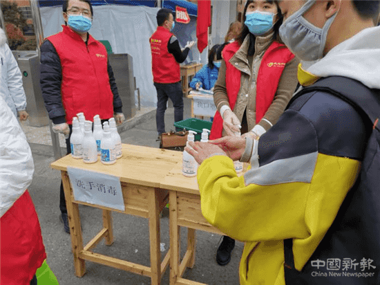 開(kāi)學(xué)前,學(xué)校對(duì)校園所有區(qū)域進(jìn)行衛(wèi)生清理、消毒,校門(mén)設(shè)置臨時(shí)留觀區(qū)、物品隔離區(qū),校園內(nèi)設(shè)置課外活動(dòng)區(qū)、下課休息室等。3月15日上午,思源學(xué)校九年級(jí)580名學(xué)生帶上床上用品、生活用品、換洗衣物,錯(cuò)時(shí)分班,在學(xué)校正大門(mén)通過(guò)嚴(yán)格查驗(yàn)健康碼或社區(qū)證明、測(cè)量體溫、更換口罩、洗手消毒、領(lǐng)取“新冠狀疫情期間學(xué)生防控手冊(cè)”等進(jìn)入校園。