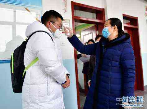 3月9日,在青海省海東市第二中學(xué),學(xué)生進入教室前進行測溫。