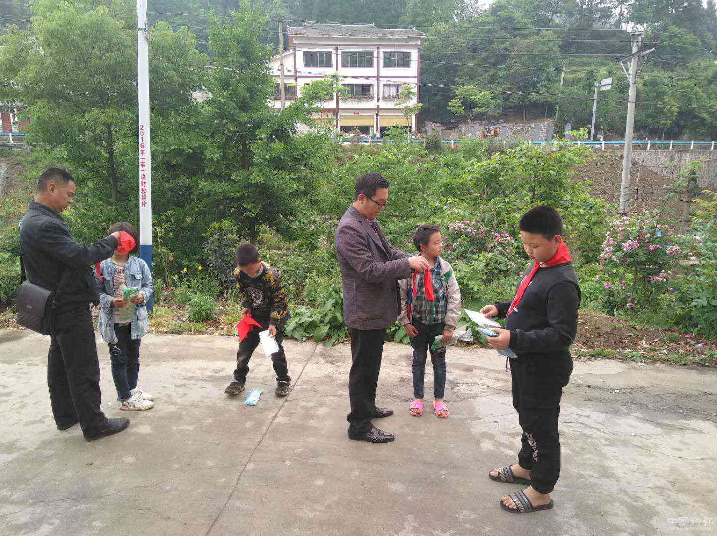 每到一處,校長(zhǎng)余盛亮都給孩子們帶去了小小的禮物,并親自為他們佩戴好鮮艷的紅領(lǐng)巾,讓學(xué)生感受到了學(xué)校、老師的溫暖。