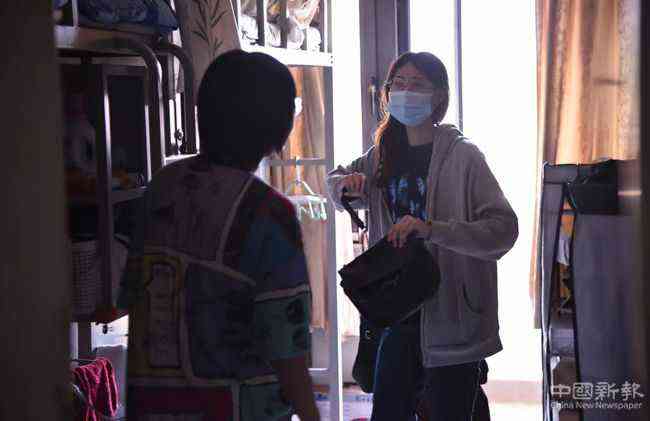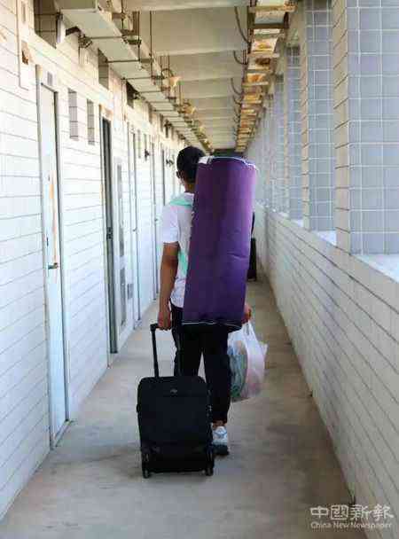 推著箱子在志愿者的帶領(lǐng)下前往宿舍。