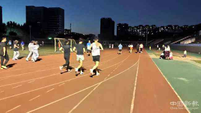 行走在操場旁,能聽見拍打籃球和鍛煉的聲音。