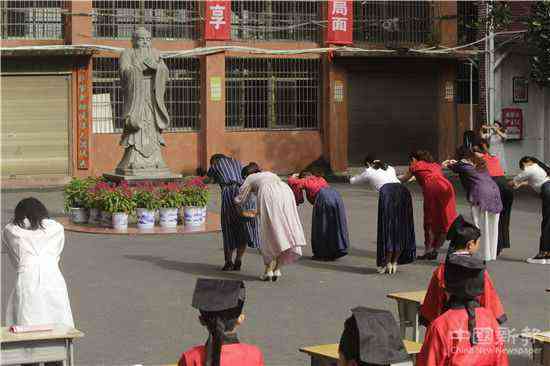 兩個(gè)校區(qū)近800多名一年級(jí)新生在老師和家長(zhǎng)的見證下,通過“正衣冠”、“拜孔子”、“吟誦經(jīng)典”、“朱砂啟智”、“擊鼓鳴志”、“啟蒙描紅”、“茶敬師親”、“許愿留念”等八個(gè)活動(dòng)程序,上演了一場(chǎng)具有傳統(tǒng)文化的“開筆禮”。