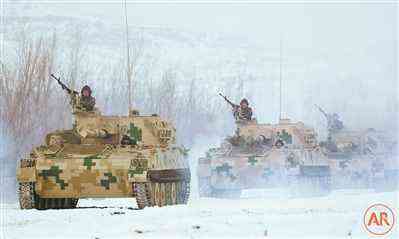 1月13日,新疆軍區(qū)某裝甲團組織裝甲裝備進行冰雪地機動行軍訓(xùn)練。