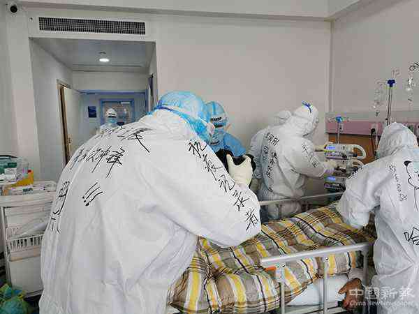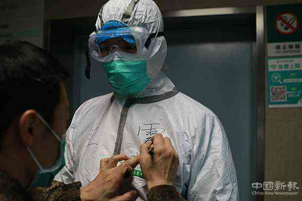 在防護服上寫下姓名。車偉 攝