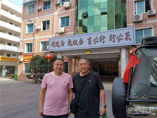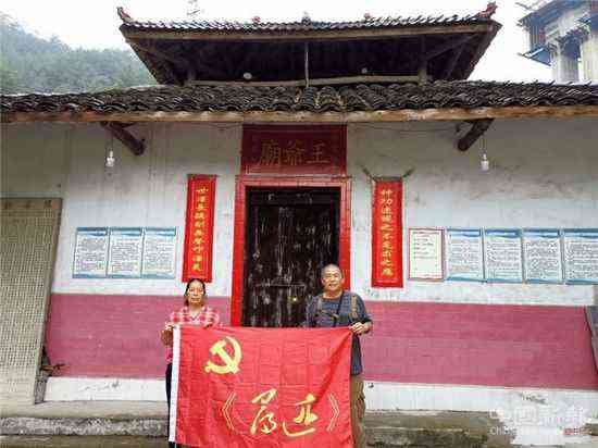 沈沉在松坎打?qū)氫佂鯛攺R紅軍駐地舊址,與三元村支書張宗群合影。