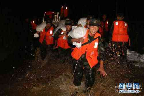 7月8日凌晨,武警江西省總隊(duì)景德鎮(zhèn)支隊(duì)官兵在珠山區(qū)觀(guān)音閣地區(qū)搬運(yùn)沙袋加固昌江堤壩。新華社發(fā)(曾勇攝)