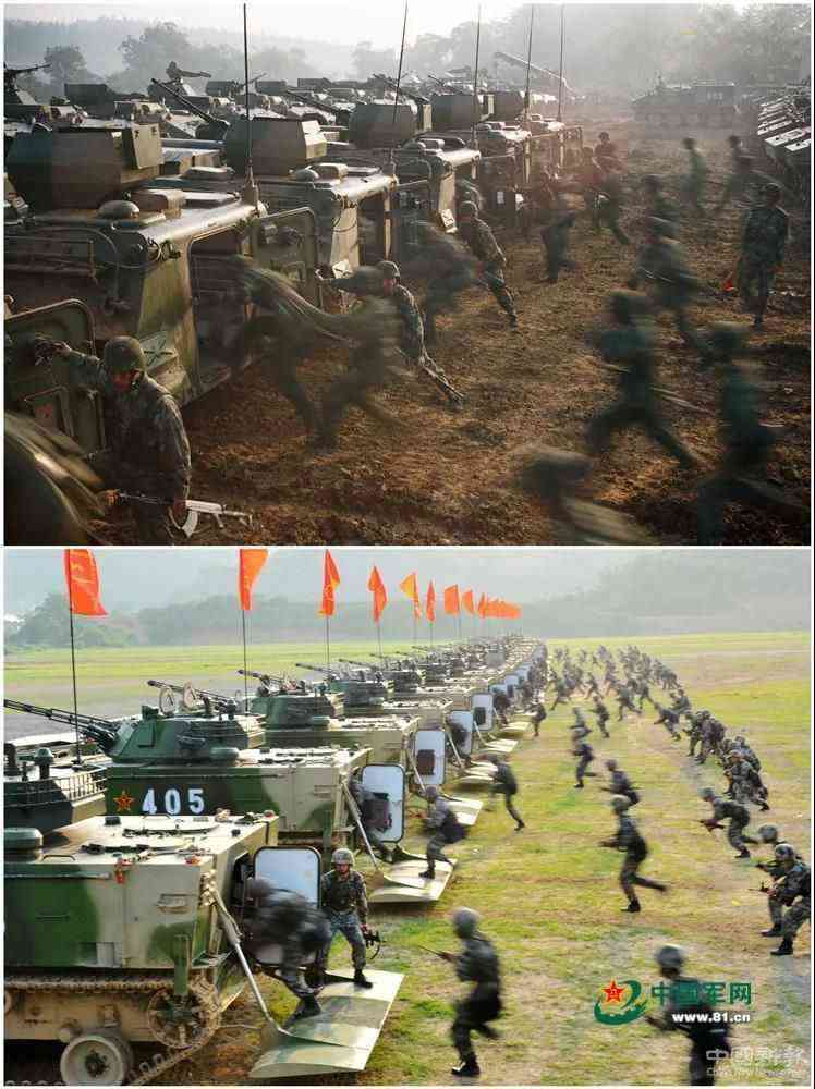 上:2006年演習(xí),官兵快速登車準(zhǔn)備戰(zhàn)斗。下:2012年5月,“硬骨頭六連”官兵組織快速蹬車,裝備的更新?lián)Q代,更加激發(fā)了官兵練兵備戰(zhàn)的熱情。(拼版照片)