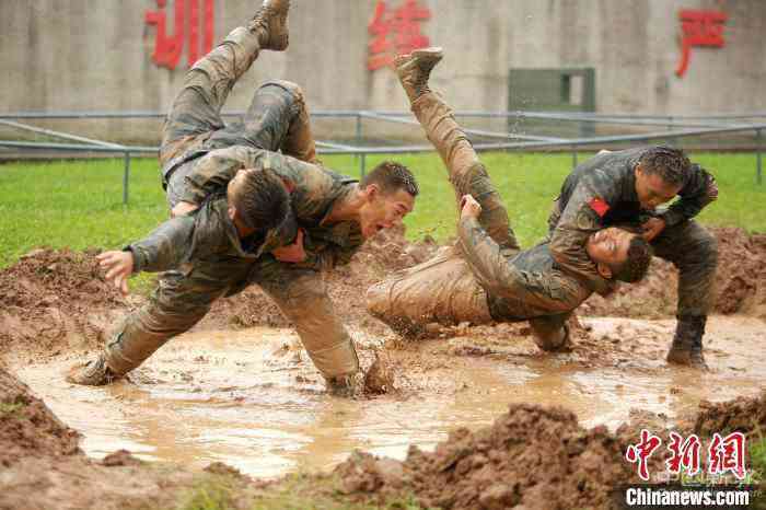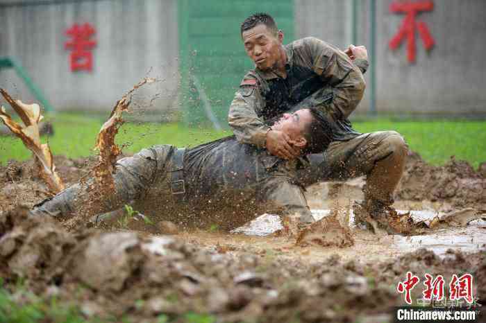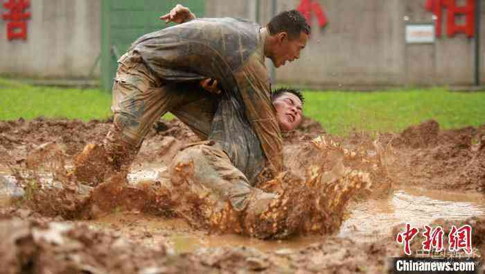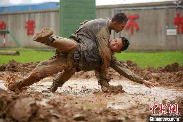 泥潭摔擒訓(xùn)練。 孟德龍 攝