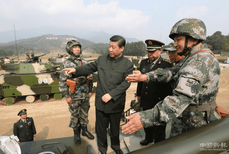 2012年12月10日,習近平在廣州軍區(qū)某部訓練場,登上兩棲突擊車了解裝備情況