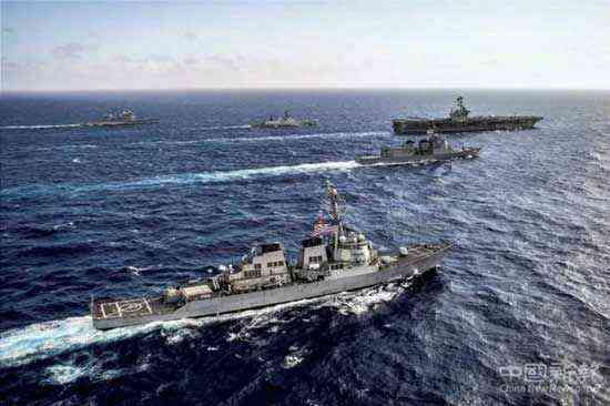 資料圖片:美日印澳四國艦艇參加“馬拉巴爾”海上聯(lián)演資料圖。(印度海軍官網(wǎng))