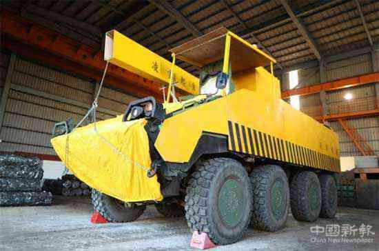 臺(tái)軍裝甲車(chē)偽裝成起重車(chē)(圖:臺(tái)灣《中時(shí)電子報(bào)》取自臺(tái)軍方)