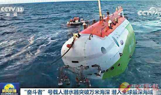 中國首艘萬米級載人潛水器“奮斗者”號昨日成功在西太平洋馬里亞納海溝坐底科考,刷新其在10月27日于此地創(chuàng)造的10,058米中國載人深潛紀(jì)錄,坐底深度10,909米。分析人士稱,此舉彰顯中國人最深海底探險的綜合技術(shù)實力,躋身國際深海底探險的領(lǐng)先行列。