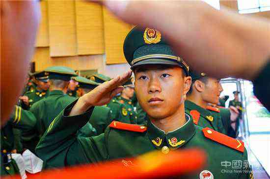 授銜儀式在莊嚴(yán)的軍歌中拉開了帷幕,新兵們精神抖擻,神情激昂,一同唱響屬于他們的歌曲。“現(xiàn)授予吳鑫等同志列兵警銜······”新兵團領(lǐng)導(dǎo)宣布授銜命令后并為新兵代表戴上了軍銜及標(biāo)志服飾。同時,新兵們互相為戰(zhàn)友戴上警銜、帽徽、臂章以及國防服役章等,這標(biāo)志著他們自此成為了一名光榮的武警戰(zhàn)士。