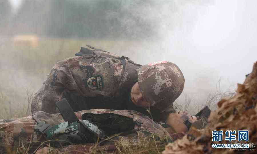 11月29日,衛(wèi)勤專業(yè)參賽隊(duì)員在進(jìn)行戰(zhàn)場“傷員”急救。新華社發(fā) 武一明 攝 圖片來源:新華網(wǎng)