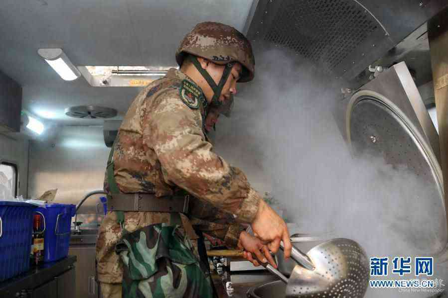 11月29日,飲食保障隊(duì)參賽隊(duì)員在野戰(zhàn)炊事車內(nèi)加工制作野戰(zhàn)快餐。新華社發(fā) 呂冀周 攝 圖片來源:新華網(wǎng)