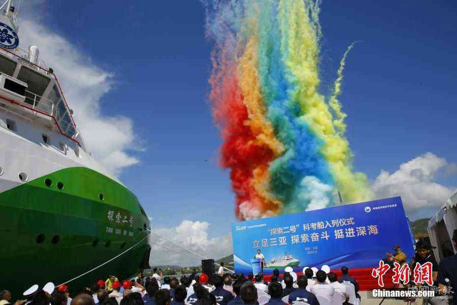 6月28日,載人潛水器支持保障母船“探索二號(hào)”船抵達(dá)三亞崖州灣科技城南山港,正式入列。“探索二號(hào)”是中國(guó)首艘全數(shù)配備國(guó)產(chǎn)化科考作業(yè)設(shè)備的載人潛水器支持保障母船,由一艘海洋工程船歷經(jīng)一年半時(shí)間改造而得。該船總長(zhǎng)87.2米,滿載排水量6800噸,配置兩臺(tái)全回轉(zhuǎn)舵槳和兩臺(tái)艏側(cè)推,采用全電力推進(jìn),續(xù)航力大于15000海里。