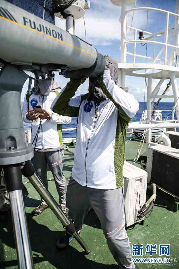 7月27日,科研人員在科考船上觀察動物。 新華社記者 張麗蕓 攝 圖片來源:新華網(wǎng)