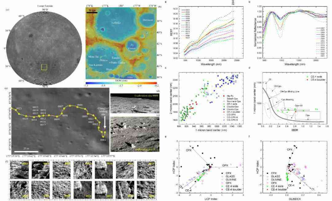 自軌道衛(wèi)星實現(xiàn)對月球背面的遙感觀測以來,大量研究揭示南極-艾特肯盆地底部存在鎂鐵質(zhì)異常,相比返回樣品以及月球隕石,也有著不同的化學(xué)特性。嫦娥四號通過對南極-艾特肯盆地撞擊坑底部濺射物層的探測,發(fā)現(xiàn)該區(qū)域鎂鐵質(zhì)礦物特征與遙感數(shù)據(jù)相似。
