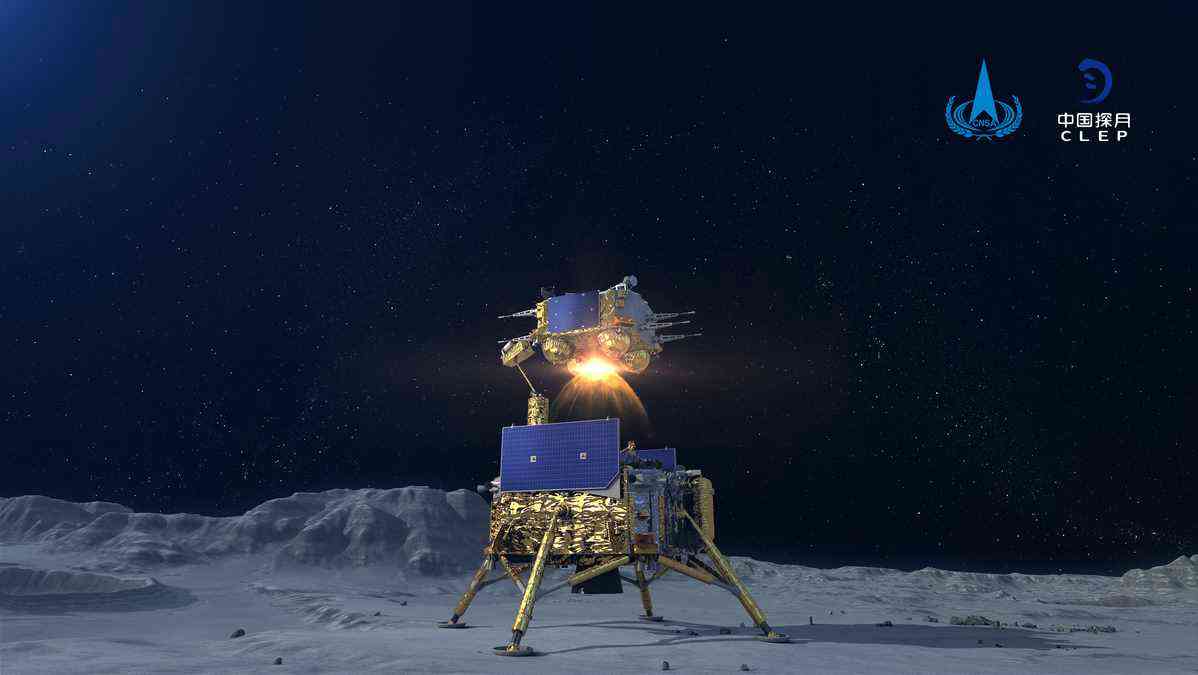 嫦娥五號(hào)上升器在月面起飛示意圖。