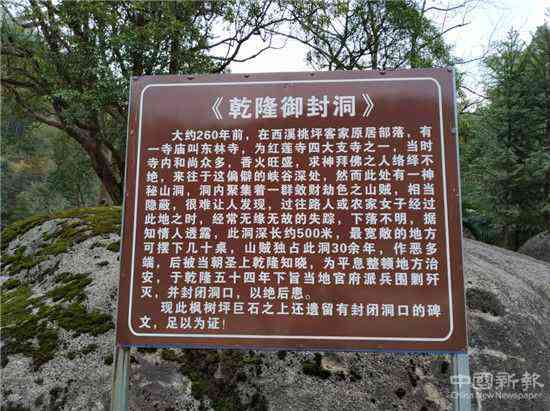 大約260年前,在西溪桃坪客家原居部落,有一寺廟叫東林寺,為紅蓮寺四大支寺之一,當時寺內和尚眾多,香火旺盛,求神拜佛之人絡繹不絕,來往于這偏僻的峽谷深處,然而此處有一神秘山洞,洞內聚集著一群斂財劫色之山賊,相當隱蔽,很難讓人發(fā)現(xiàn),過往路人或農家女子經(jīng)過此地時,經(jīng)常無緣無故的失蹤,下落不明,據(jù)知情人透露,此洞深長約500米,最寬敞的地方可擺下幾十桌,山賊獨占此洞30余年,作惡多端,后被當朝圣上乾隆知曉,為平息整頓地方治安,于乾隆五十四年下旨當?shù)毓俑杀鴩藲灉?,并封閉洞口,以絕后患。