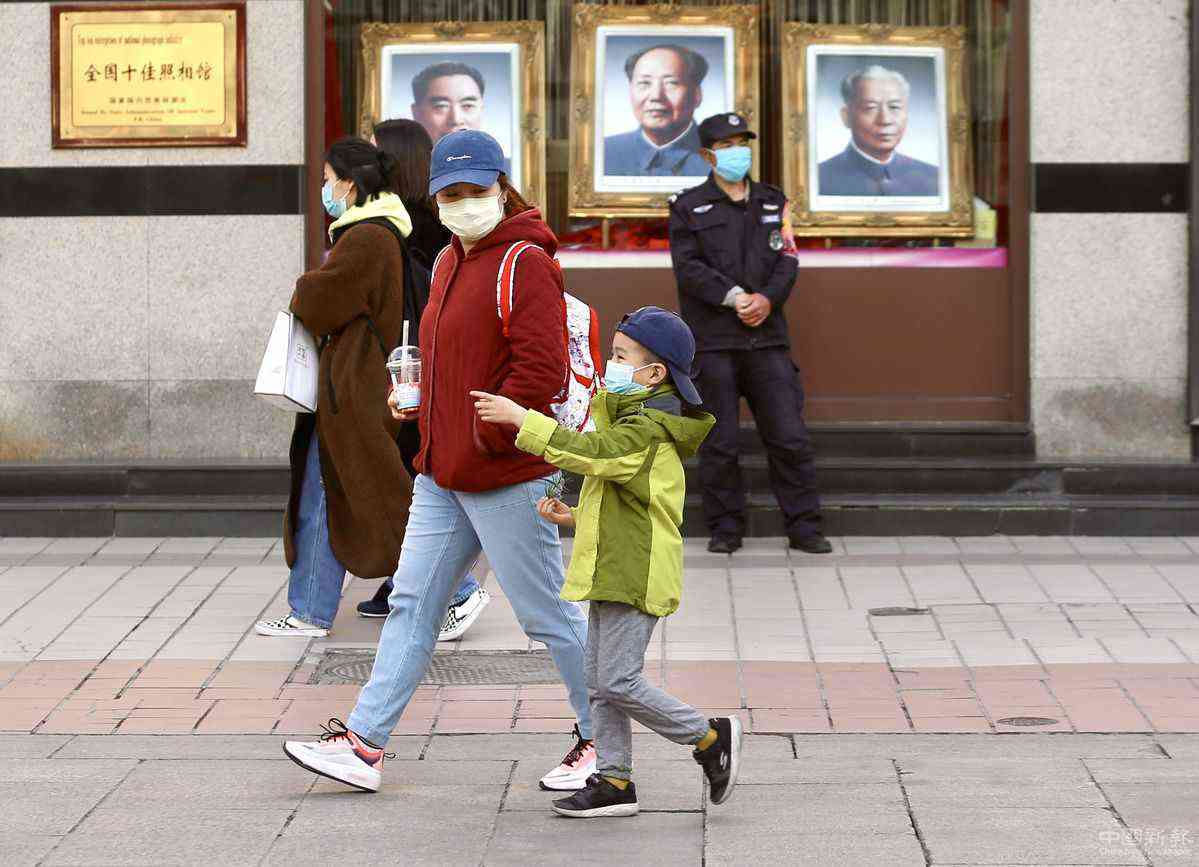 3月28日,北京王府井步行街,戴著口罩走在戶外的孩子。(中國日報記者 鄒紅 攝)