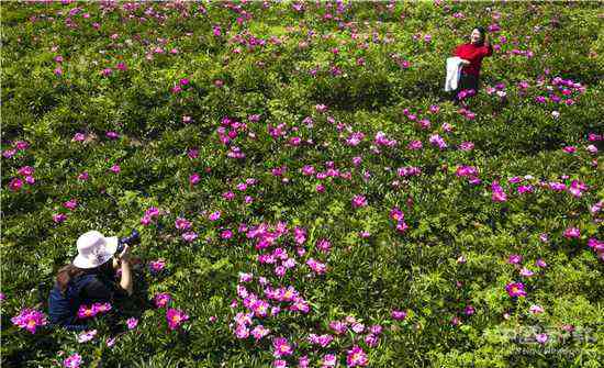 谷雨之后幾天,金牛、湯池,安徽省合肥市廬江縣兩大芍藥園區(qū)——金牛山下山南芍藥園和湯池溫泉之畔大自然生態(tài)園的芍藥競相綻放、花姿綽約,一派姹紫嫣紅的迷人景色。一排排芍藥正吮吸著春天的雨露爭相綻放,蜂忙蝶舞間,游客們興致勃勃地迎來了最佳賞花期,置身于花海之中,賞景拍照。