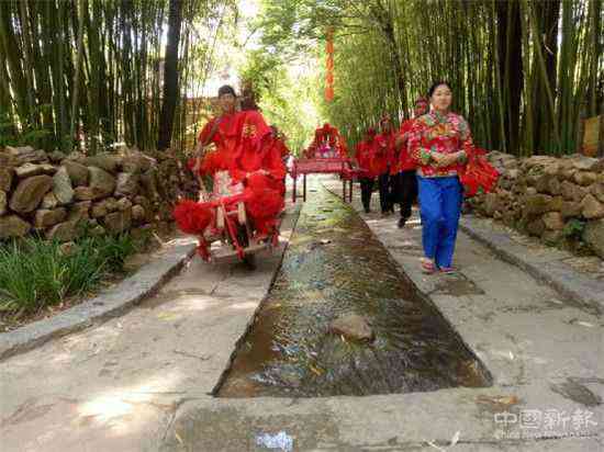 走進(jìn)竹泉村,宋代朱熹的詩句形容最合適不過“勝日尋芳泗水濱,無邊光景一時新。等閑識得東風(fēng)面,萬紫千紅總是春。”綠油油竹林、山泉流水清澈透明,如同一幅世外桃源美圖。竹泉村的美并非如此簡單,景美人更美。坐落在村中的房屋,很好的保留了沂蒙當(dāng)?shù)靥赜械娘L(fēng)貌。娶親、接親的風(fēng)俗表演,還原了當(dāng)?shù)仫L(fēng)俗風(fēng)貌。紅花衣,新娘紅蓋頭,新郎用推車載著新娘,鼓樂齊鳴喜氣洋洋。