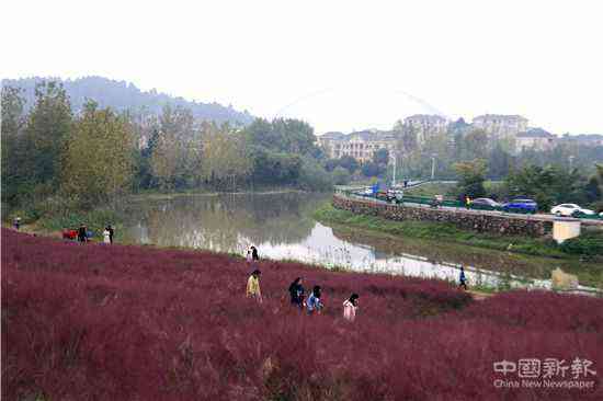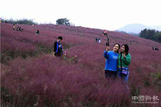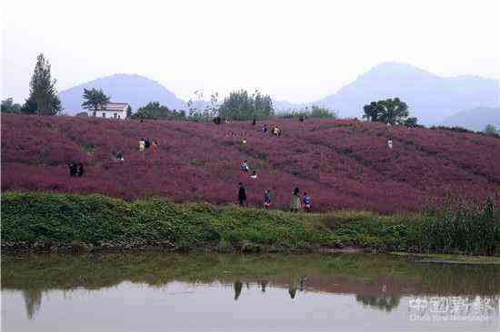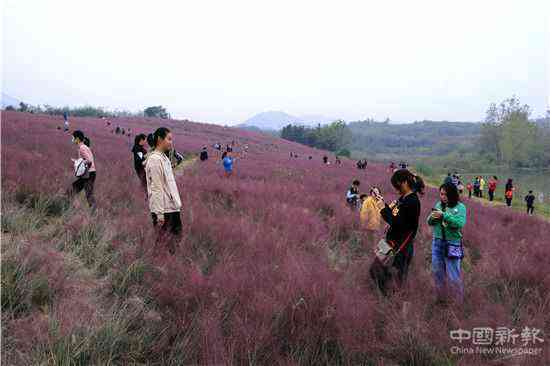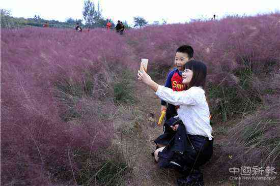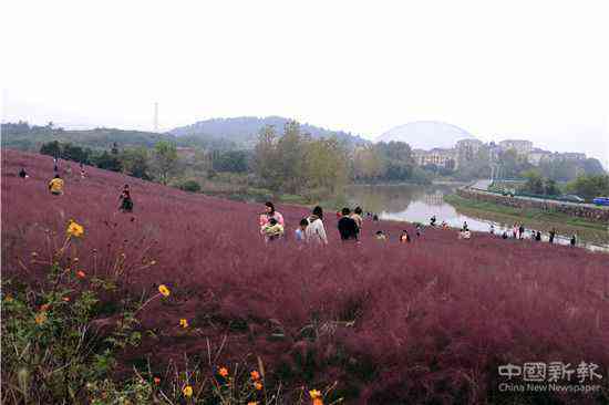 2020年10月18日,安徽省合肥市廬江縣湯池鎮(zhèn)湯果公路舒廬干渠南側(cè)山坡,大批游客在近百畝的粉黛亂子草海旁觀光、留影,盡情享受秋日周末美好時光。 (巢志斌 攝影報道)