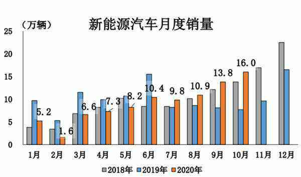 10月,新能源汽車產(chǎn)銷分別完成16.7萬輛和16萬輛,同比分別增長69.7%和104.5%,其單月產(chǎn)銷第四次刷新了當(dāng)月歷史記錄。從細(xì)分能源類型來看,其中純電動汽車產(chǎn)銷分別完成14.1萬輛和13.3萬輛,同比分別增長72.4%和115.4%;插電式混合動力汽車產(chǎn)銷分別完成2.6萬輛和2.7萬輛,同比分別增長56.7%和63.7%;燃料電池汽車產(chǎn)銷分別完成77輛和79輛,同比分別增長1.3%和4.0%。