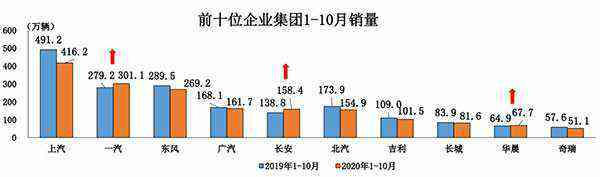 1-10月,汽車銷量排名前十位的企業(yè)集團(tuán)銷量合計(jì)為1763.5萬輛,同比下降5.0%,占汽車銷售總量的89.5%,低于上年同期0.3個百分點(diǎn)。