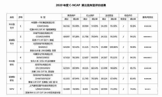截至2020年10月底,2020年度第三批8款車型的C-NCAP評價試驗全部完成。11月21日,中國汽車技術(shù)研究中心有限公司(簡稱“中汽中心”)在廣州發(fā)布了其中7款車型的評價結(jié)果。其中,鑒于近期理想ONE涉及了召回,本著對消費者負責(zé)的原則,測評管理中心將進一步確認相關(guān)信息。
