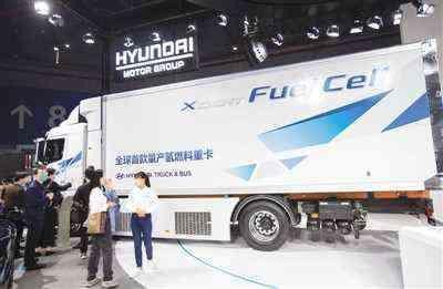 11月6日,第三屆進(jìn)博會(huì)汽車展區(qū),現(xiàn)代汽車展示的全球首款量產(chǎn)氫燃料電池重卡受到參觀者關(guān)注。 |