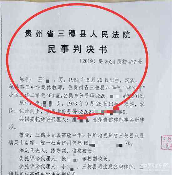 中國新報貴州訊(記者 羅茜 劉鵬飛)2020年6月5日,貴州省三穗縣法院以開庭的形式對一起生命權(quán)糾紛案進(jìn)行宣判。在法庭上出現(xiàn)的判決書顯示,狀告三穗縣民族高級中學(xué)(以下簡稱“三穗民中”)的王誠章、李金竹夫婦索賠96萬多元的訴訟請求被法院駁回。