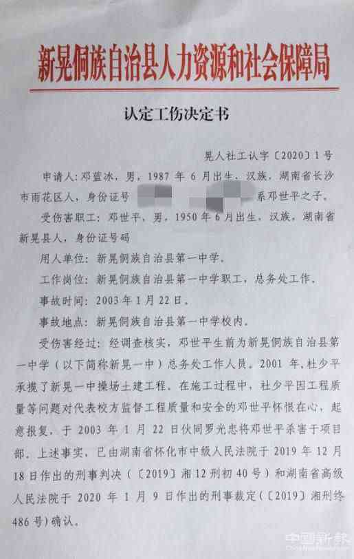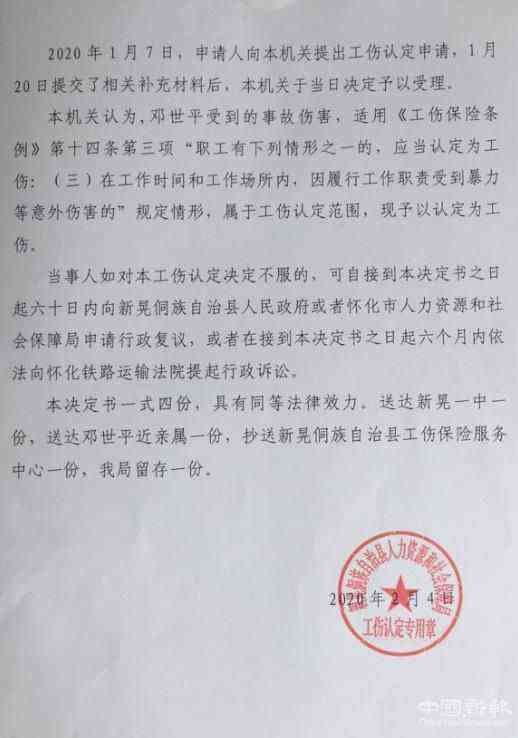 △新晃侗族自治縣人社局出具的《認(rèn)定工傷決定書》