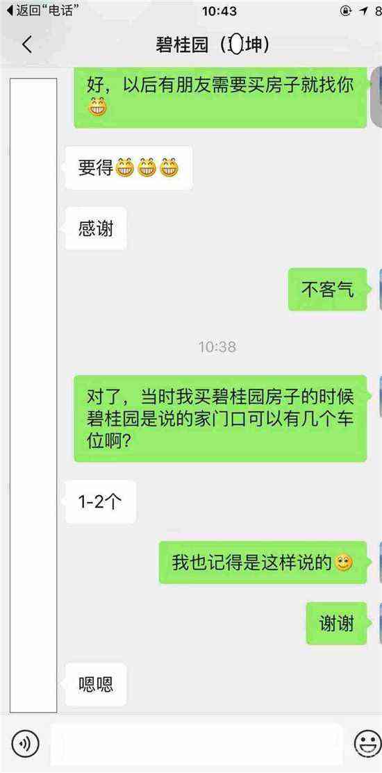 “當(dāng)時(shí)別墅預(yù)售時(shí),銷售中心的別墅立體效果模型不僅明確有停車位,而且售房顧問都還通過微信聊天方式確認(rèn)每戶都有車位后,我們才購(gòu)的房。”一位不愿意透露姓名“泊林別墅”業(yè)主出示其當(dāng)初拍攝于銷售中心的別墅效果模型及售房顧問的微信聊天確認(rèn)截圖稱。