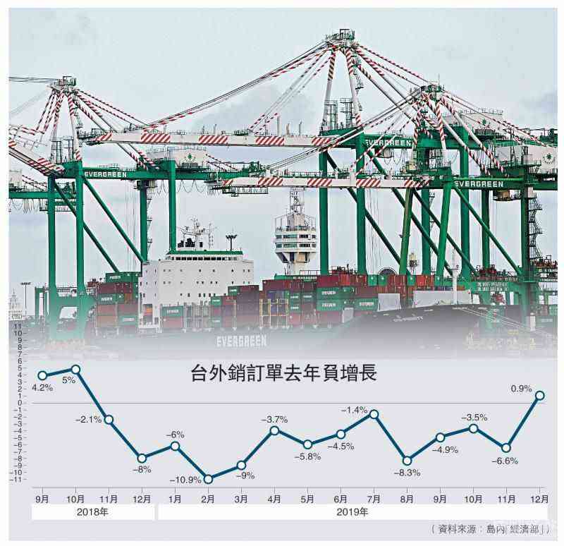 臺“經(jīng)濟部”統(tǒng)計處20日公布2019年12月外銷訂單金額為437.8億美元,雖然結(jié)束連續(xù)13個月負增長,但全年訂單金額累計4845.6億美元,年減5.3%,仍為負增長。有學(xué)者向大公報表示,民進黨當局領(lǐng)導(dǎo)人蔡英文雖然贏得選舉,但并非是施政出色,而是靠炒作“反中牌”。蔡政府在經(jīng)濟建設(shè)方面成效不彰,尤其破壞兩岸關(guān)係,導(dǎo)致兩岸經(jīng)濟合作受阻,嚴重衝擊臺灣經(jīng)濟,以致外銷全年負增長。