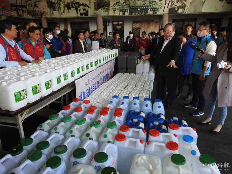 圖:新北市三重先嗇宮12日向多所學(xué)校捐贈(zèng)洗手液和消毒水\中央社