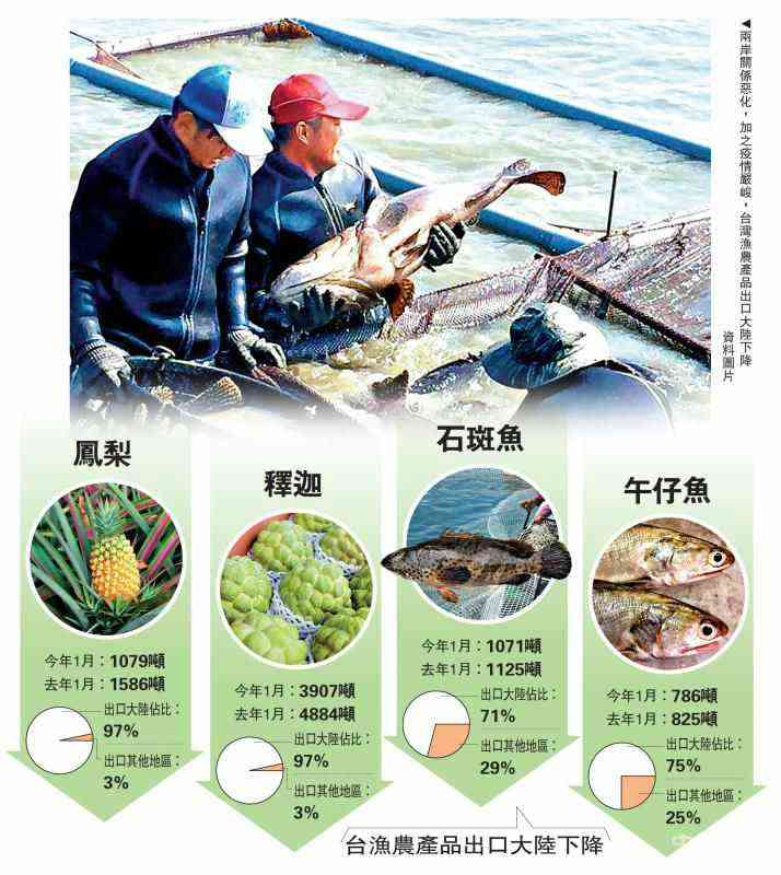 圖:兩岸關(guān)系惡化,加之疫情嚴(yán)峻,臺(tái)灣漁農(nóng)產(chǎn)品出口大陸下降\資料圖片